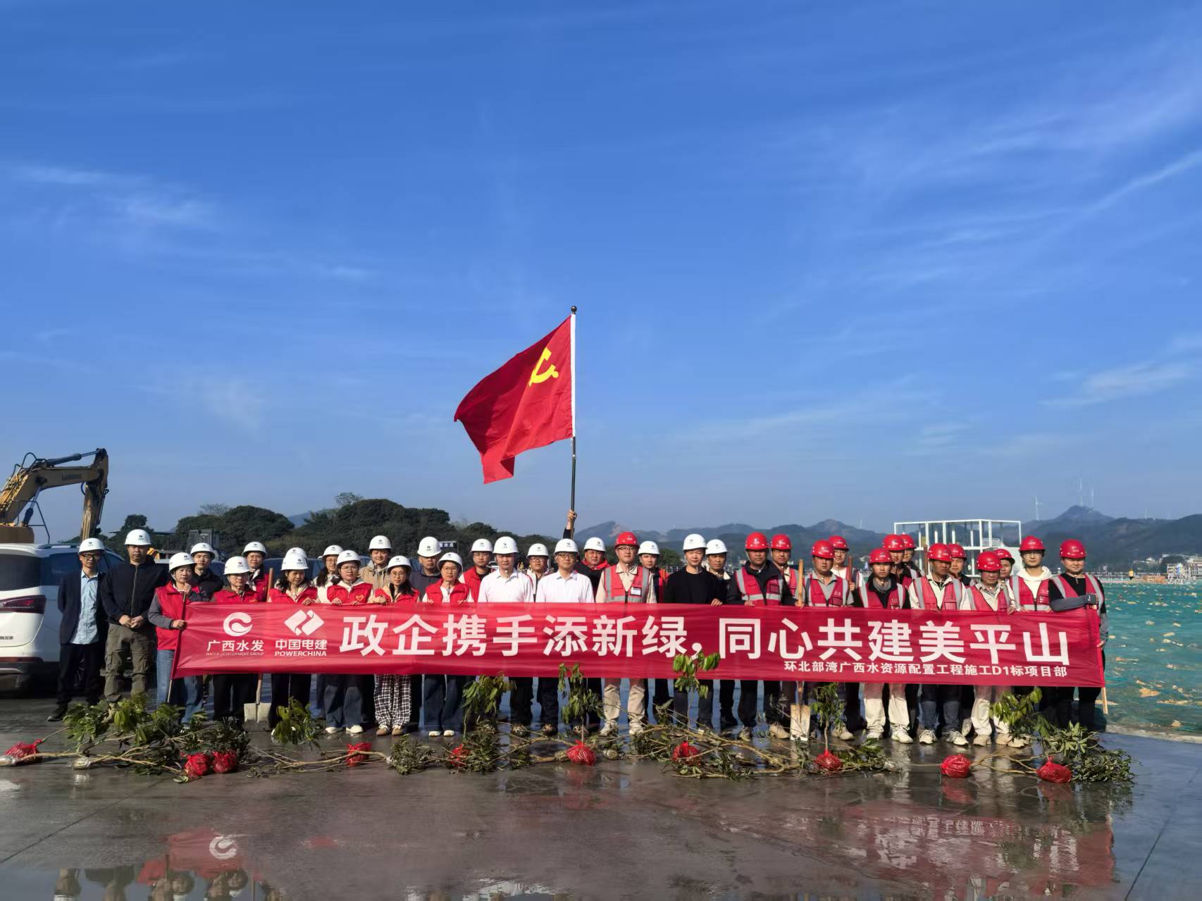 3月12日,环北广西D1标项目部党支部携手平山镇政府,在灵东泵站共同开展“政企携手添新绿,同心共建美平山”主题植树活动。