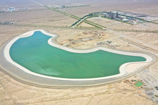 阿克塞县生态治理水系连通工程是完善区域供水网络、增强水资源统筹调配能力的重点水利项目。调蓄水池总库容367万立方米,为碾压砂砾石坝体,池堤长3227.95米,填筑量94.67万立方米,水池东西长460米,南北宽870米,设计水深10.00米、最大坝高15.30米。同时与上游已建成的50万立方米和10万立方米两座调蓄水池进行水系连通,为Ⅲ等中型工程。