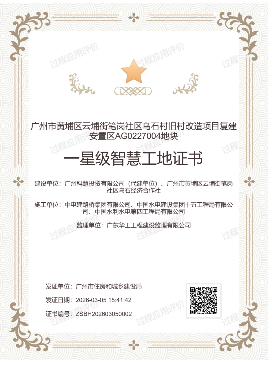 广州黄埔乌石项目获评“广州市一星级智慧工地” |